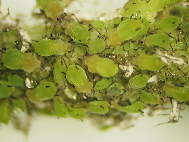 ユキヤナギアブラムシ成虫(体長2mm)及び幼虫