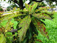 葉表は明瞭な褐色の円形病斑