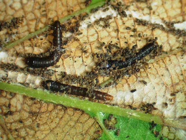 マダラメイガ類中齢幼虫(体長5mm)のコロニー