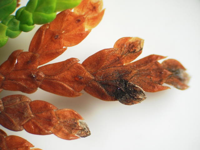 黒粒葉枯病 発病部に黒粒が見える