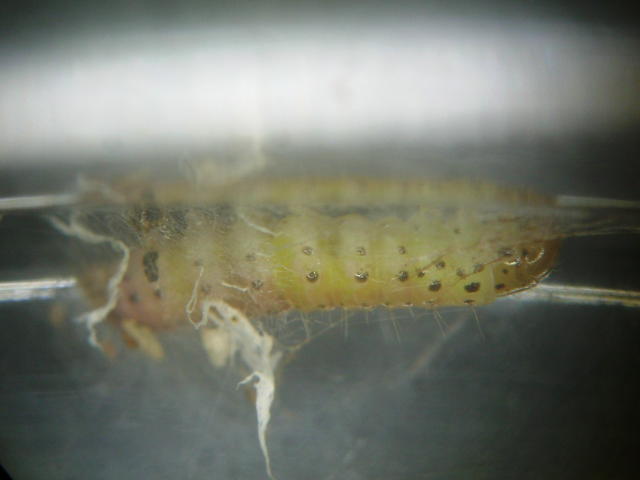 キボシクロキバガ蛹化直前幼虫(体長4mm)