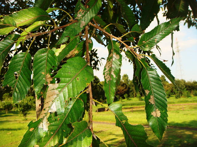 キリガ類幼虫による食害葉