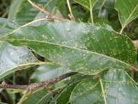 多数寄生したクヌギ葉