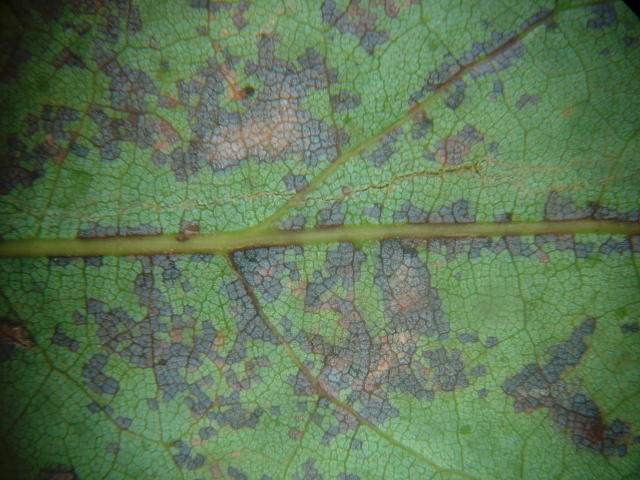環紋葉枯病 黒褐色の葉裏病斑