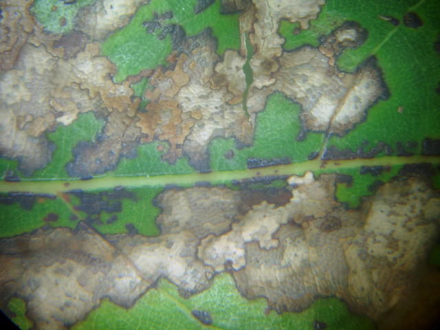 環紋葉枯病 灰褐色の葉表病斑