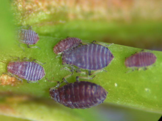 マキシンハアブラムシ成虫(体長1.5mm)及び幼虫