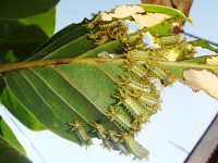 ヒロヘリアオイラガ中齢幼虫による被害葉