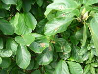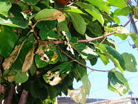 ヒロヘリアオイラガ若齢幼虫による被害葉