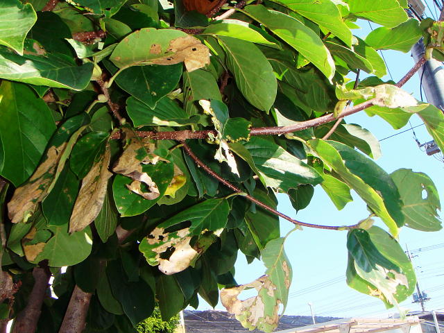 ヒロヘリアオイラガ中齢幼虫による被害葉