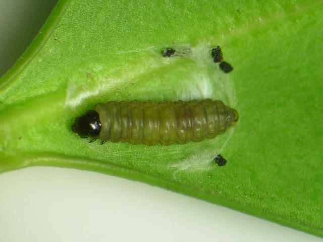 クロネハイイロハマキ蛹化直前幼虫(体長7mm)