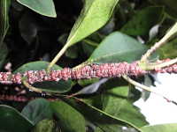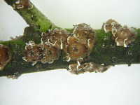 被害:成虫及び幼虫による吸汁害。排せつ物による「すす病」の発生。