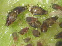 | 発生時期:6月 被害:成虫及び幼虫による吸汁害 参考:巻葉内に寄生 |