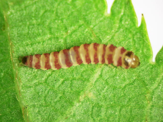 セジロチビキバガ老齢幼虫(体長6mm)