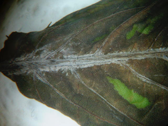 幼果菌核病 葉裏の褐変
