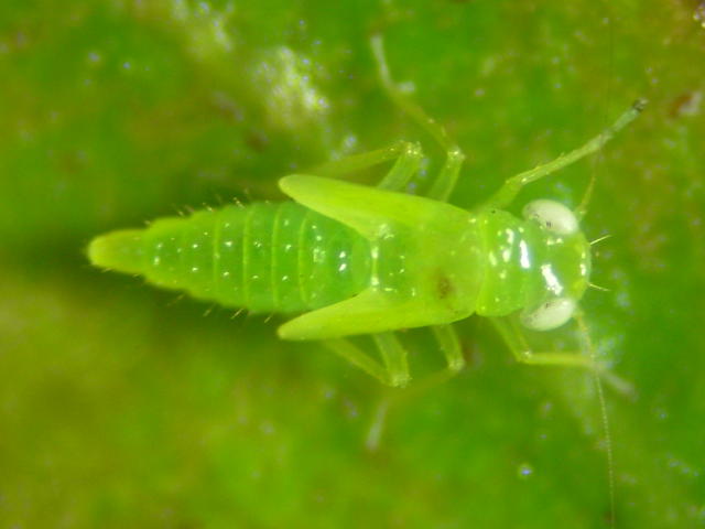 チャノミドリヒメヨコバイ老齢幼虫(体長2.3mm)