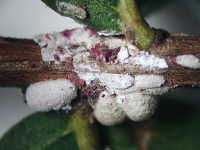 | 発生時期:8月 被害:成虫及び幼虫による吸汁害、排せつ物による「すす病」 |