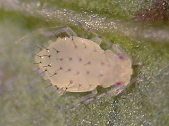 サルスベリヒゲマダラアブラムシ幼虫(体長1mm)