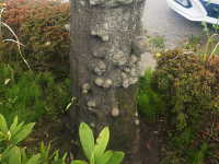 被害:枝や幹にこぶを生じ、次第に拡大する。