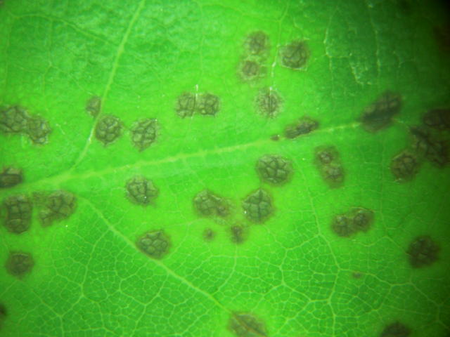 表黒点病 新葉の葉表病斑
