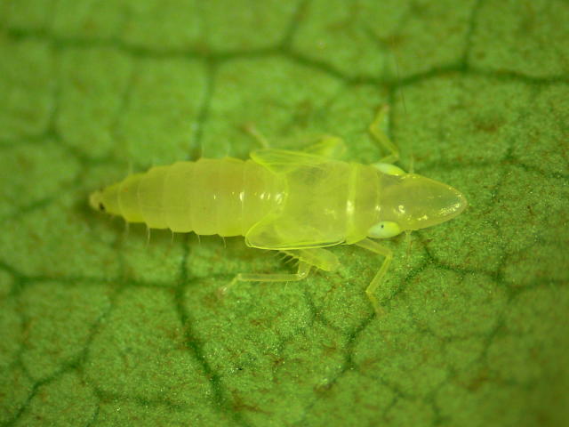 クロスジホソサジヨコバイ老齢幼虫(体長4.5mm)