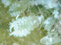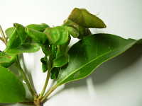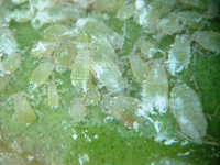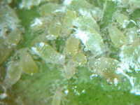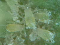| 生時期:4月〜5月 被害:成虫及び幼虫による吸汁害 参考:葉を内側に巻き、その中に寄生。 |