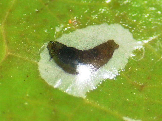 チャノハモグリバエ老齢幼虫(体長3.5mm)