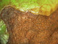 | 発生時期:7月 病原:糸状菌(かび) 伝染方法:土壌中に残った発病葉上の病原菌が伝染源となり、雨滴で伝染する。 被害:葉に不整形の赤褐色病斑を生じる。 |