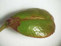 被害:加害により葉裏がさび色に変色し、萎縮する。