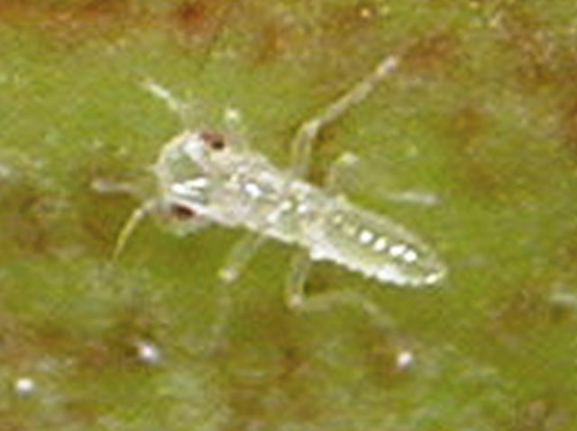 チャノミドリヒメヨコバイ若齢幼虫(体長0.8mm)