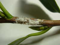被害:成虫及び幼虫による吸汁害。産卵時に枝に傷をつける。