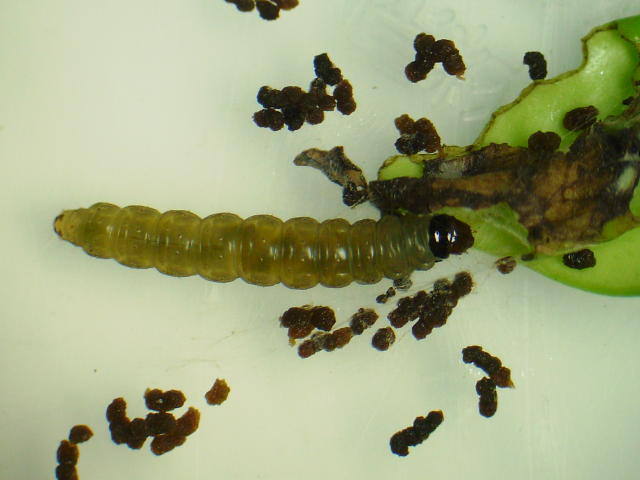クロネハイイロハマキ老齢幼虫(体長12mm)