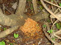 被害:幼虫による幹内の食害 参考:粒状の糞を堆積させることが特徴