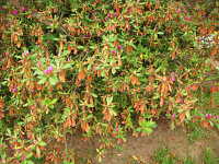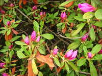 ツツジは根が浅いため、長期間まとまった雨がなく乾燥状態が続くと、半数の葉が褐変し落葉することがある。
