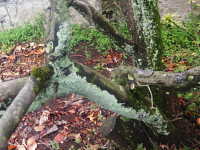 被害:細い枝では厚い菌糸膜に覆われることにより枯死することがある。美観を損ねる。