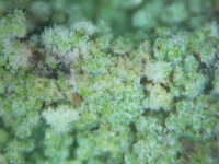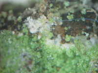 白色の菌糸と青白色の胞子
