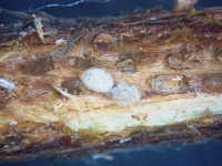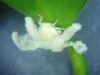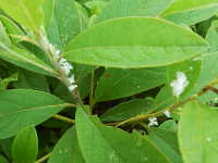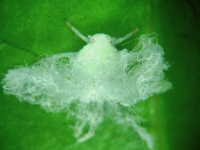 被害:成虫及び幼虫による吸汁害。産卵時に枝に傷をつける。