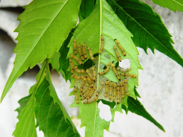 オビヒトリ若齢幼虫による被害葉裏