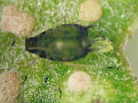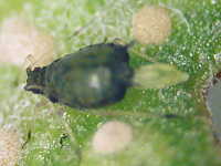 ワタアブラムシは、高温期は黒色でなく、薄緑色〜黄色の幼虫を産むことがある。