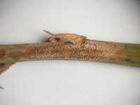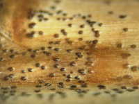 病斑部の小黒粒点(柄子殻)