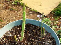 アスパラガスは新芽を4月中旬〜5月に収穫する。