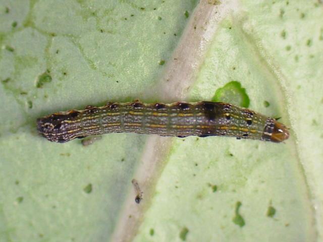 ハスモンヨトウ中齢幼虫(体長10mm)