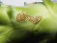 被害:茎がかさぶた状に木化する。