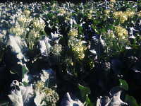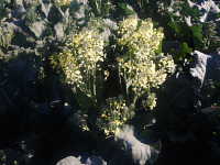 | 発生時期:12月 被害:暖冬の影響で、茎ブロッコリーの茎が収獲目安の15〜20cmになる前に花蕾が開花してしまい、商品価値がなくなる。 |
