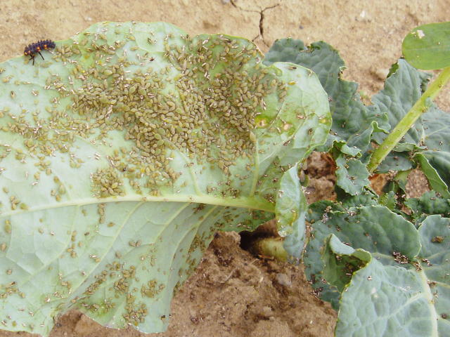 ニセダイコンアブラムシが多数寄生した葉