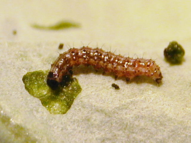 オオタバコガ若齢幼虫(体長4mm)