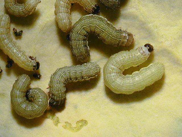 シロイチモジヨトウ中齢幼虫(体長7mm)