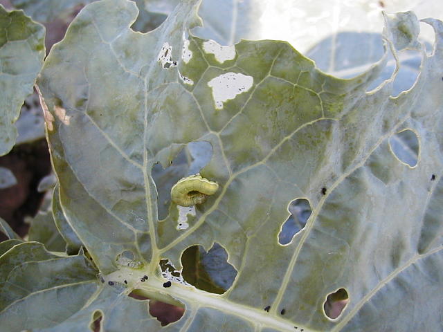 シロイチモジヨトウ幼虫による被害葉