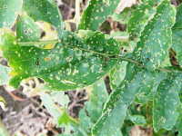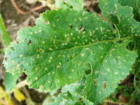 | 発生時期:成虫は6月〜7月、幼虫は7月〜9月 被害:幼虫による根の食害、成虫による葉の食害 |