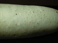被害:根の表面に白く盛り上がった斑点を生じ、進行すると斑点の中央部が黒くなり、品質が低下する。