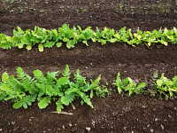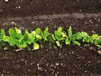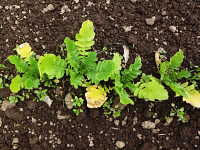 ダイコンが湿害を受けると、下葉が黄化して生育不良となる。